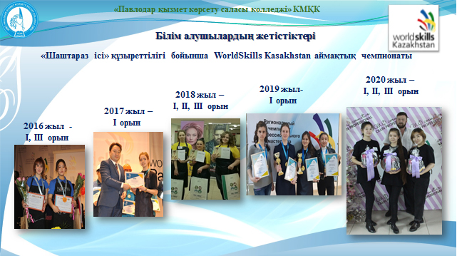 - WorldSkills әдістемесін пайдалану арқылы кәсіптік шеберлік байқаулардың ішкі фирмалық сапасын арттыруды ұйымдастыру қабілеті бар өндіріс орындарында сарапшылар мен кураторларды дайындау;