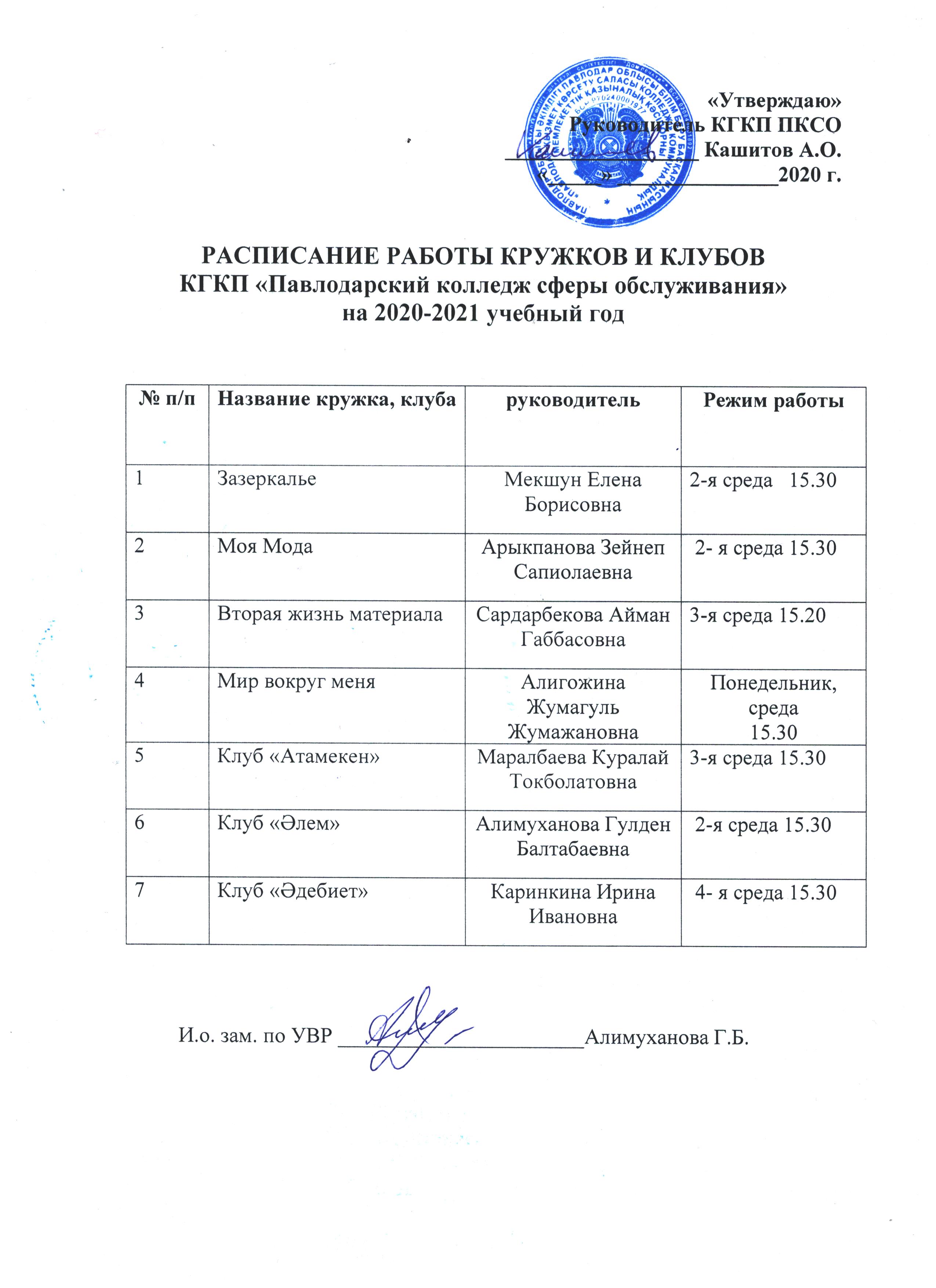 Үйірмелер мен клубтардың жұмысы