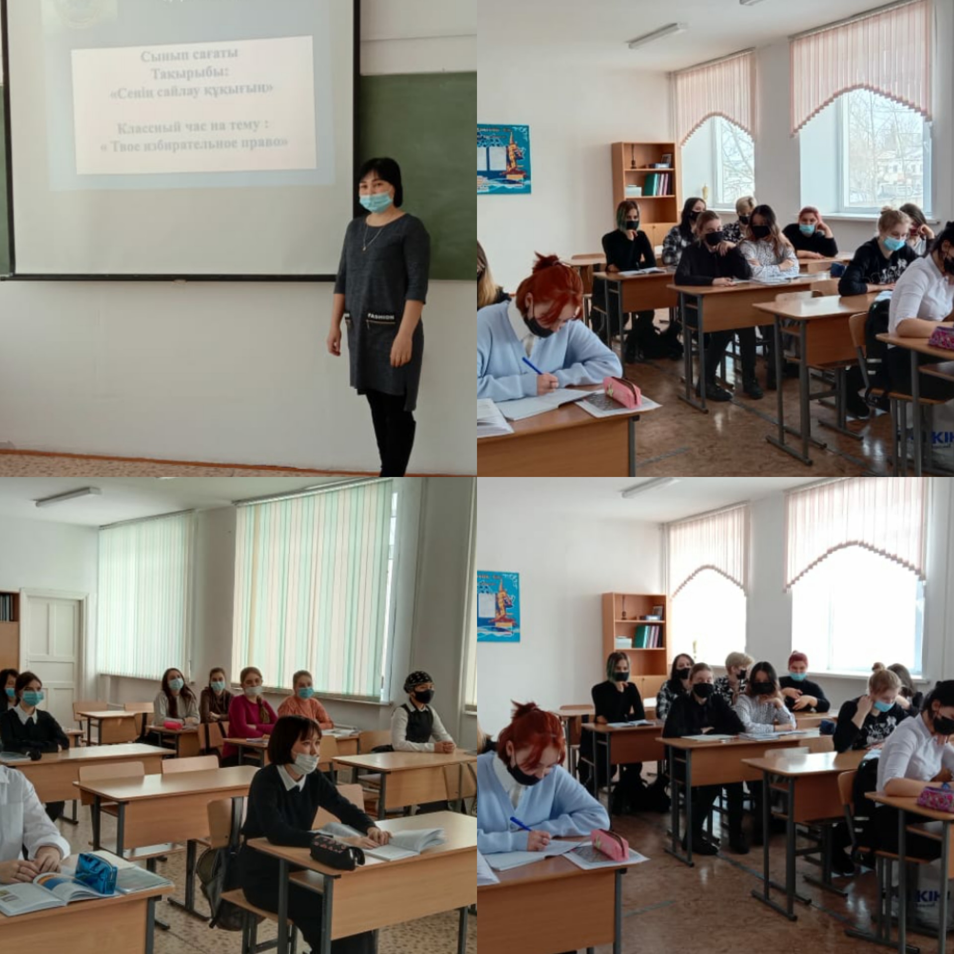 Жастарға электоралдық-құқықтық білім беру мақсатында Павлодар қызмет көрсету саласы колледжінде тарих пәнінің оқытушысы Г.Б. Альмуханова, 580 УСК төрайымы «Сенің сайлау құқығың» тақырыбында тәрбие сағатын өткізді.