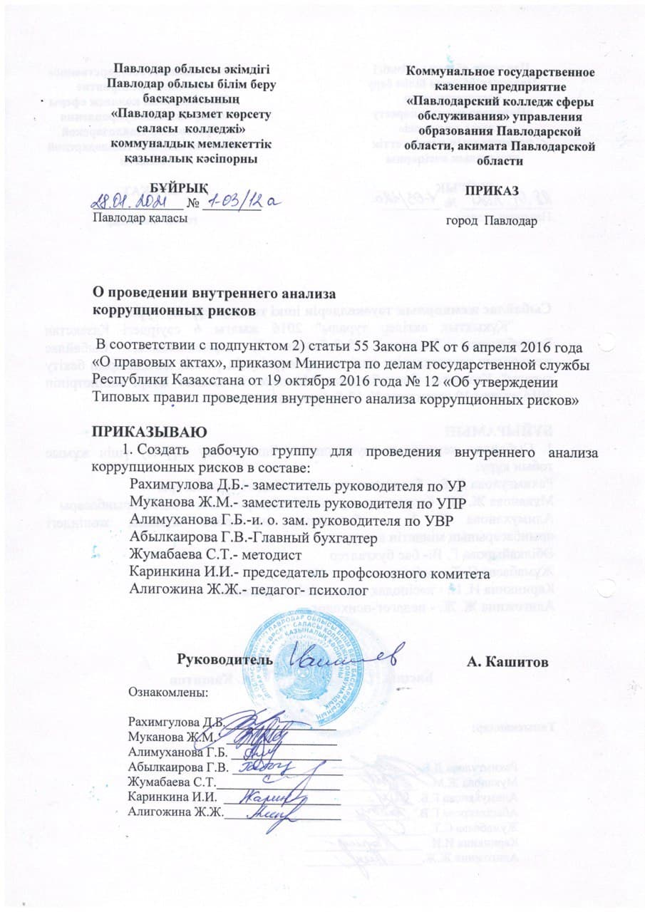 Аналитическая справка по результатам внутреннего анализа коррупционных рисков